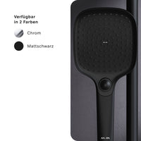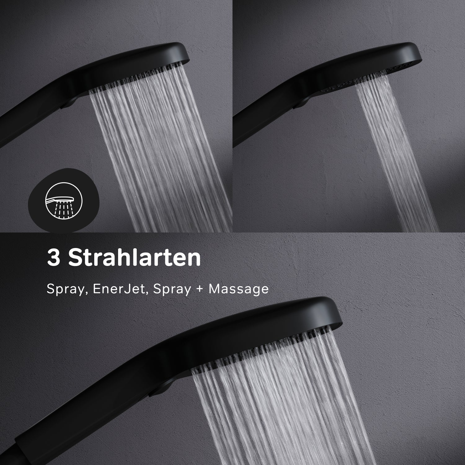Les dimensions généreuses du pommeau de douche contribuent pleinement à l'expérience d'un produit design haut de gamme. La douchette à main propose trois jets différents–Spray, EnerJet et Spray + Massage–pour une multitude d'expériences de douche : rafraîchissante le matin et relaxante le soir après une longue journée de travail. Changer de mode se fait d'une simple pression sur un bouton.