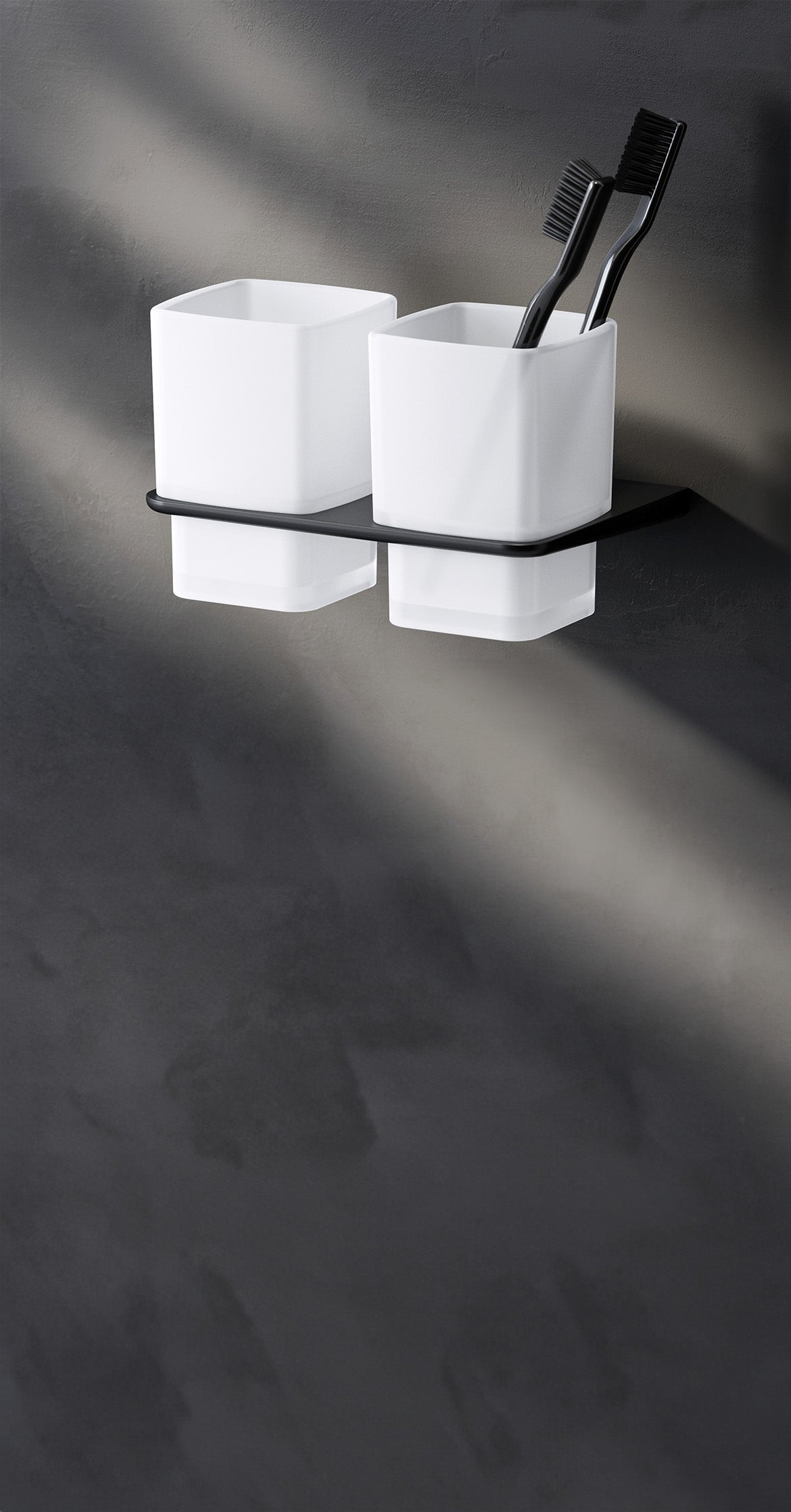 AIB343422 Porte-brosse à dents Inspire V2. 0 double tasse en verre avec support mural, noir