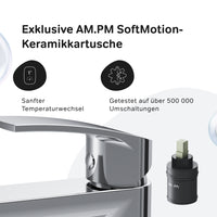 Développement interne exclusif : La cartouche de mélange en céramique SoftMotion de 35 mm de diamètre, spécialement développée pour AM. PM, permet un contrôle précis de la température et reste stable et fiable même en cas de fortes fluctuations de pression.