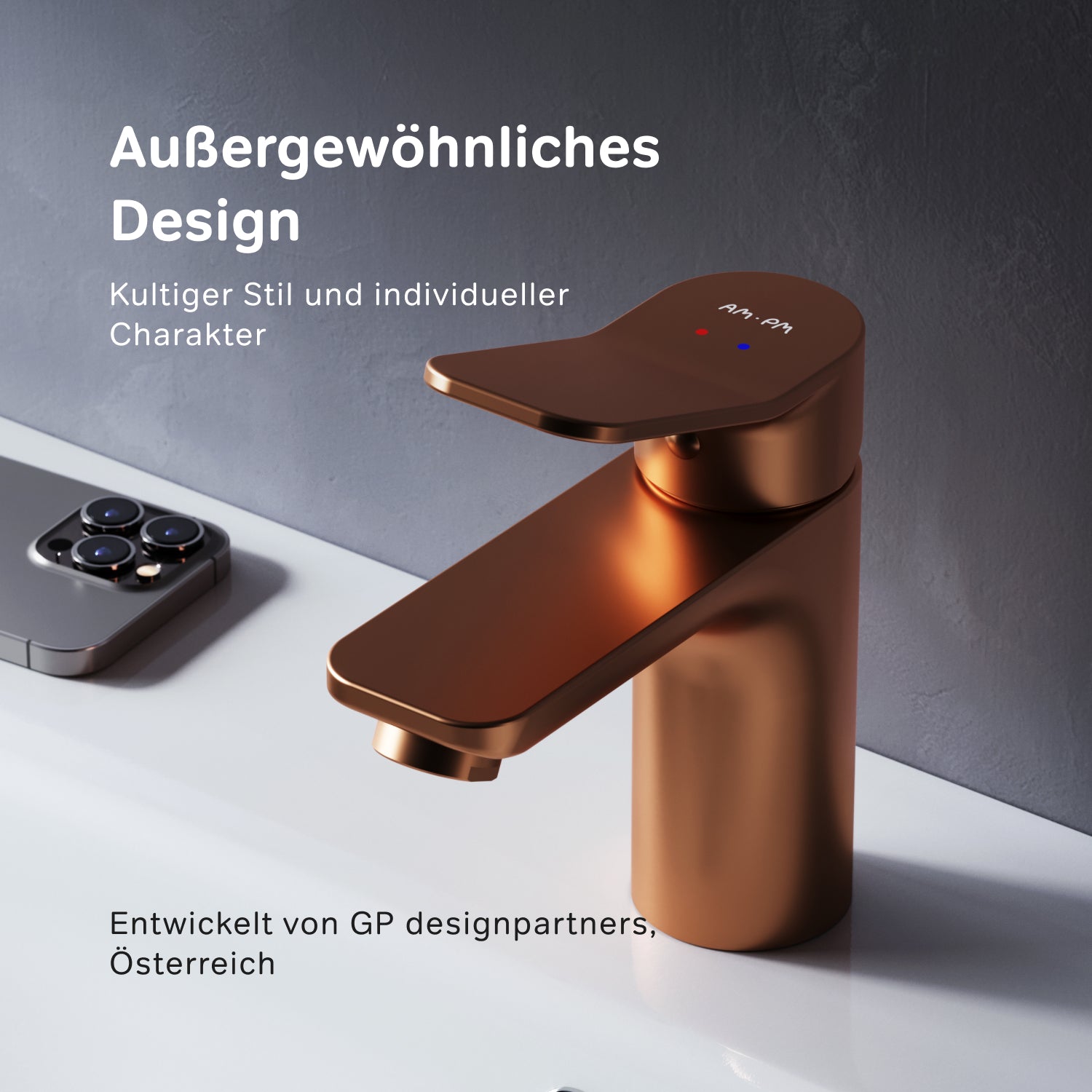 • DESIGN: Elegantes Design-Produkt mit angepasstem Höhenverhältnis der Armatur, Auslauflänge & Neigung des Armaturkörpers für eine bequeme Nutzung auf Waschbecken von 50-120cm. Die edle Armatur sorgt für einen echten Blickfang in jedem Badezimmer!
