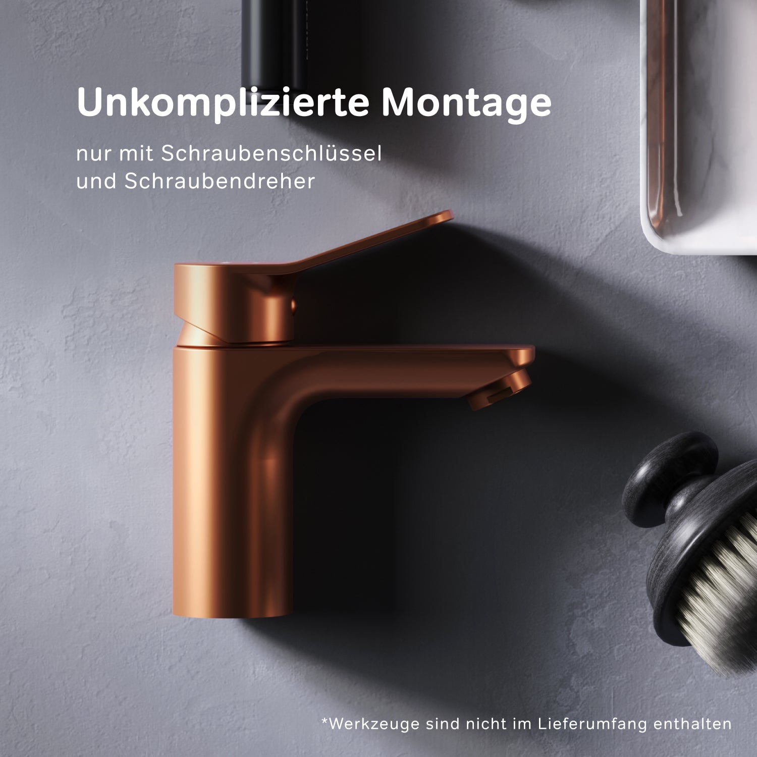 • ARMATUR: Die Mischbatterie verfügt über einen Einhebelmischer für warmes & kaltes Wasser. Der Wasserhahn ist mit einer 1-Loch Installation blitzschnell am Waschtisch montiert.