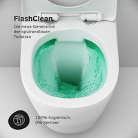 • WC OHNE SPÜLRAND: Ein randloses WC für weniger Schmutz, Keime und Bakterien sowie für eine schnelle und einfache Reinigung. Eine neue FlashClean-Generation randloser WCs ohne den Einsatz von Kunststoff – 100 % plastikfrei.