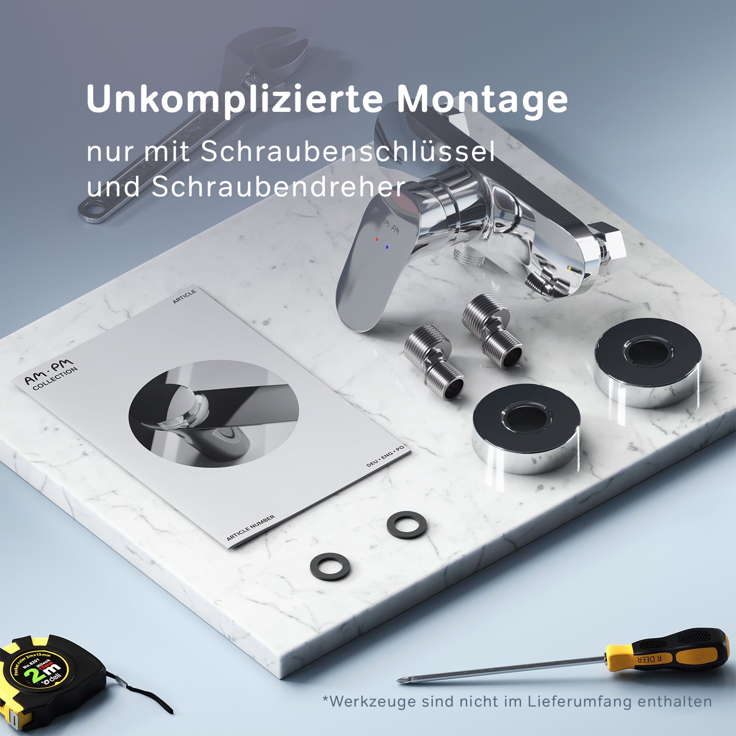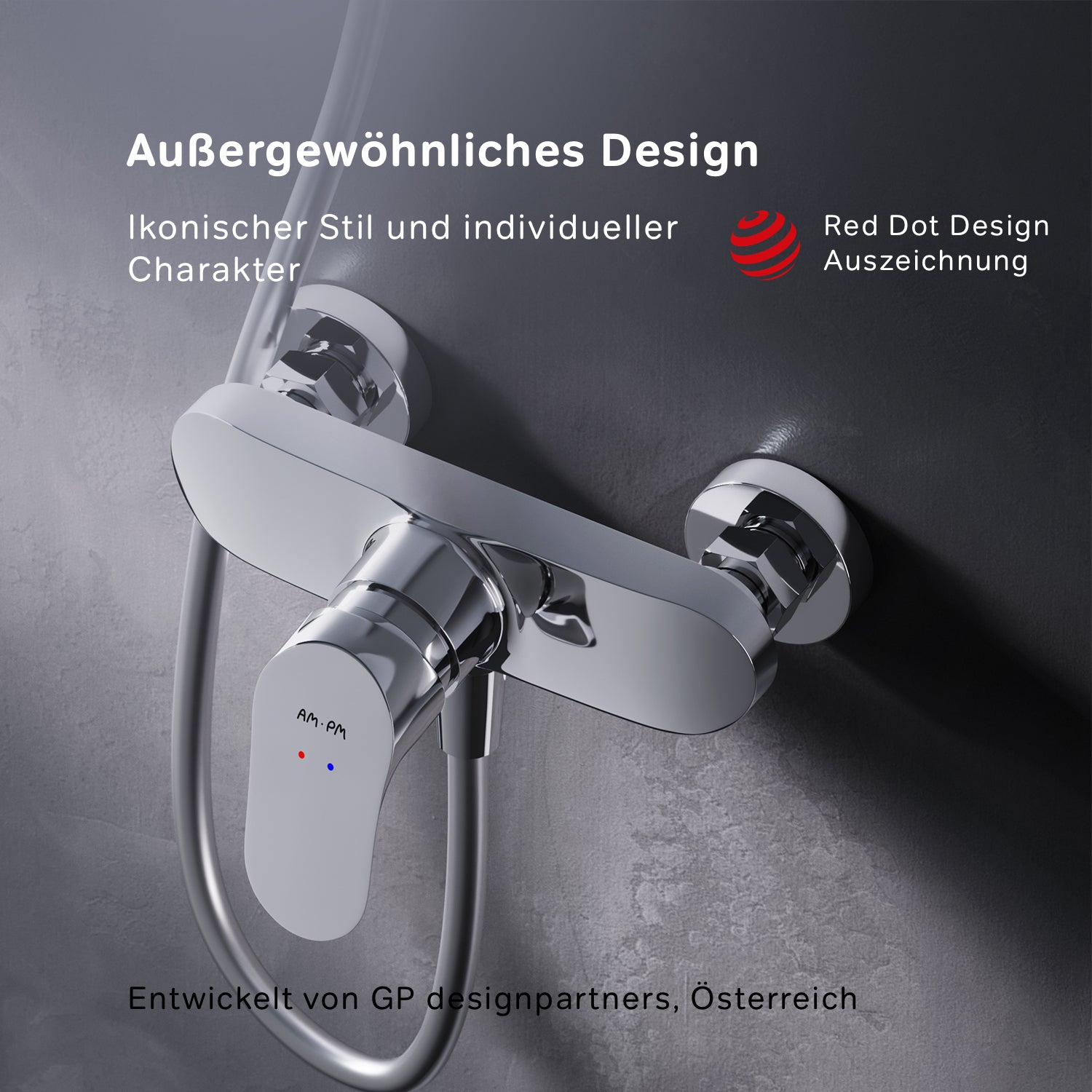 Die einzigartige Form des Griffs lässt Wassertropfen abperlen, damit sie sich nicht auf der Oberfläche ablagern und austrocknen. Exklusive Entwicklung: Speziell designt für die AM.PM-Keramikkartusche SoftMotion 35 mm, die die Temperaturregelung ausgleicht und außerdem einen optimalen Druckabfall ermöglicht. Akkurate Technik für Ihren Komfort: Dank des großzügigen Bewegungsbereichs ist der Regler für die Wassertemperatur noch einfacher zu bedienen.