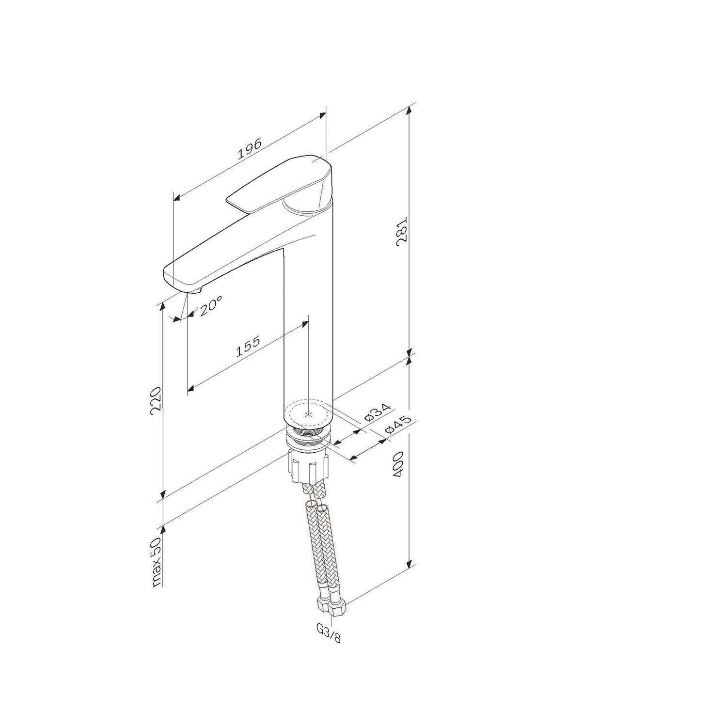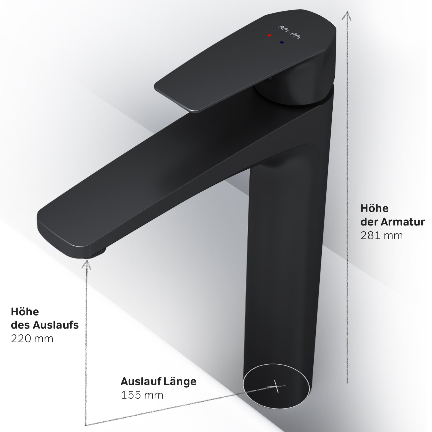 FGA92022 Bad Armatur Gem Waschtischarmatur mit hohem Auslauf Wasserhahn, Schwarz