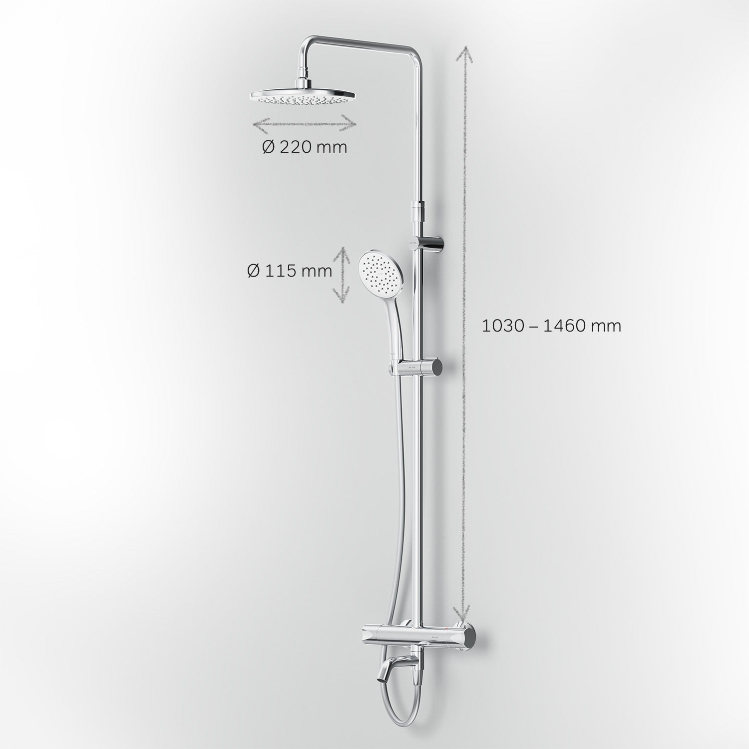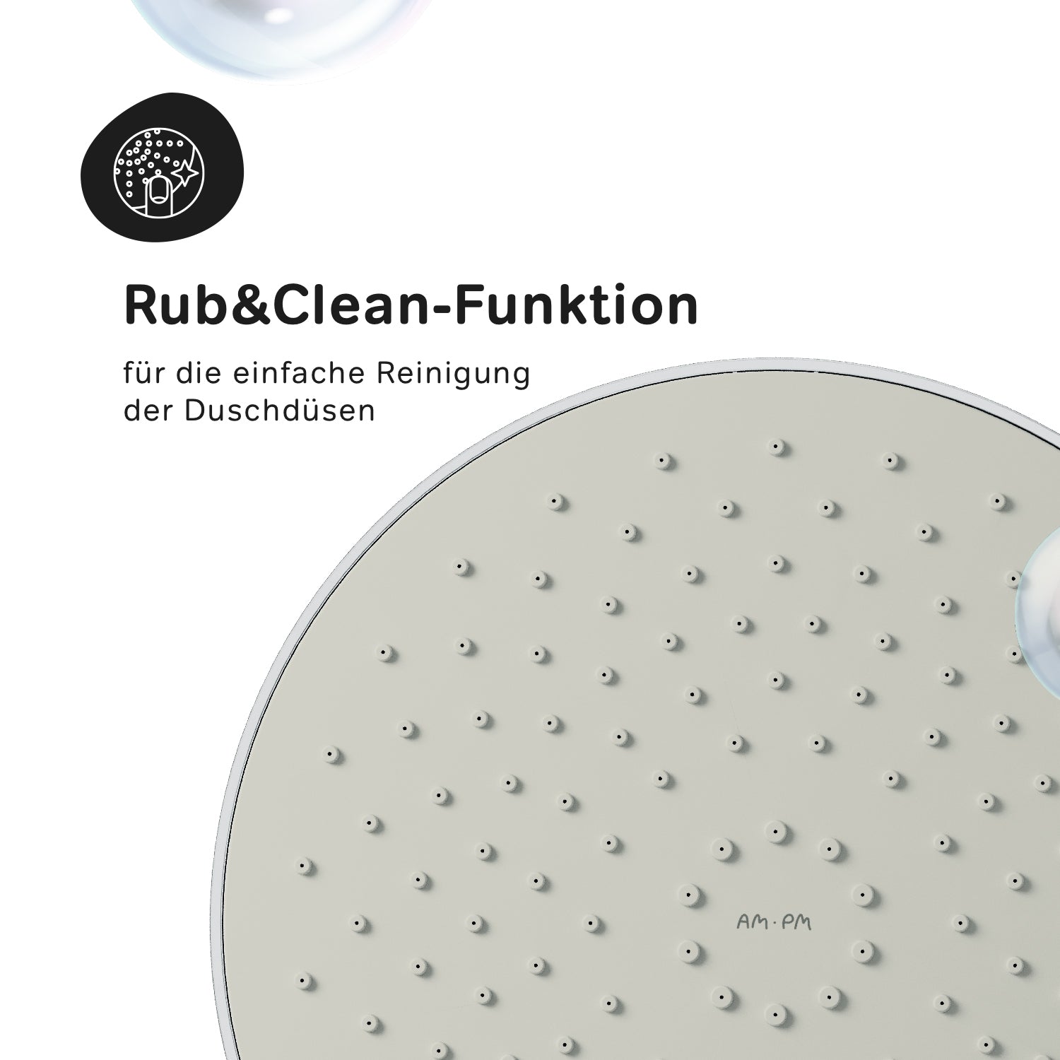 Durchdachte Details für Ihre Bequemlichkeit: Die teleskopische höhenverstellbare Wendestange ist von 880 bis 1270 mm verstellbar, um Personen jeder Größe Komfort zu bieten, und das Kugelgelenk im Halter der Regendusche ermöglicht den Neigungswinkel einzustellen. Der große Durchmesser der Duschköpfe ermöglicht es Ihnen, alle Vorteile einer Regendusche zu erleben, während der 1750 mm lange Schlauch Bewegungsfreiheit beim Duschen bietet. Die Mischerbatterie ist so konzipiert, dass ihre Verwendung intuitiv ist und keine Anstrengung erfordert.