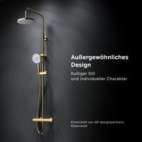 F07XA499 Duschsystem mit Thermostat Duscharmatur X-Joy Regendusche set Duschsäule, Gold