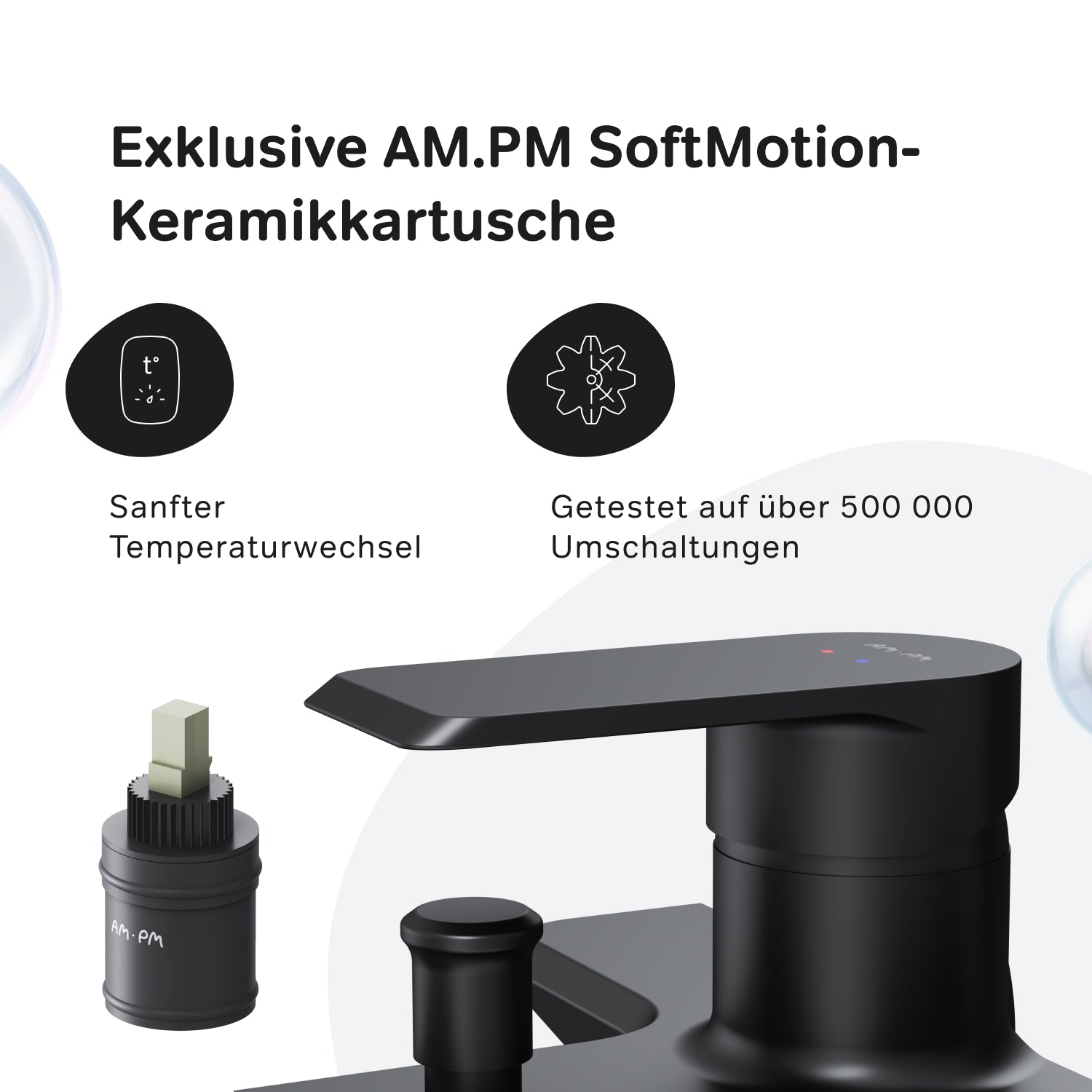 Speziell für AM.PM entwickelte SoftMotion-Keramikkartusche (Durchmesser 35 mm) sorgt für eine optimale Temperaturregelung und ermöglicht es der Armatur, auch bei Druckabfällen zu funktionieren.
