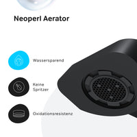 Der Aerator mischt den Wasserstrahl mit Luft, um Wasser zu sparen und Spritzen zu verhindern.