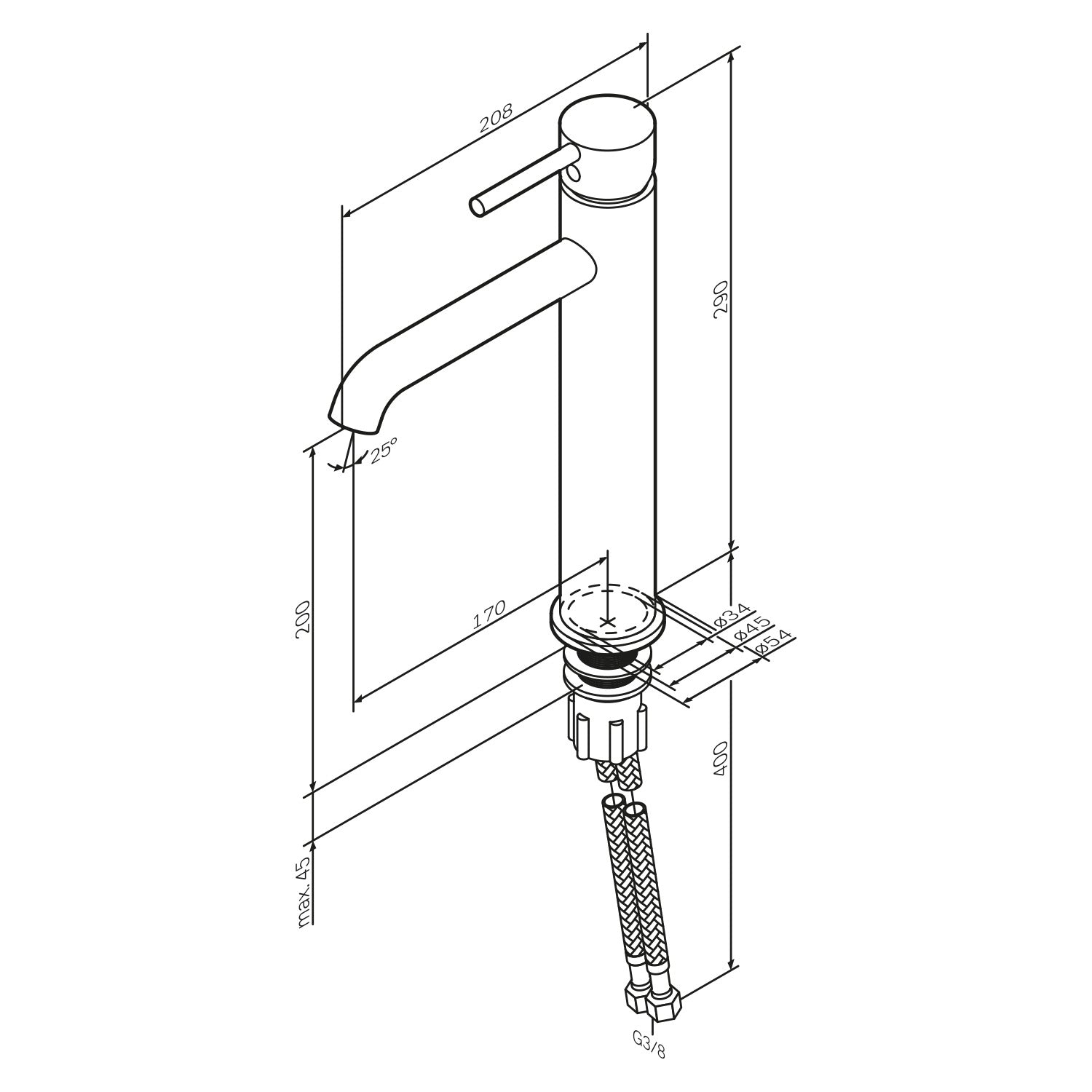 Hergestellt aus hochwertigem Messing, bietet dieser Einhebelmischer nicht nur Langlebigkeit, sondern auch ein stilvolles Design. Die mattschwarze Oberfläche verleiht der Armatur einen zeitlosen Glanz und fügt sich perfekt in das Ambiente Ihres Badezimmers ein. Mit seinem präzisen Mischhebel ermöglicht er eine komfortable und angenehme Nutzung Ihres Waschbeckens.