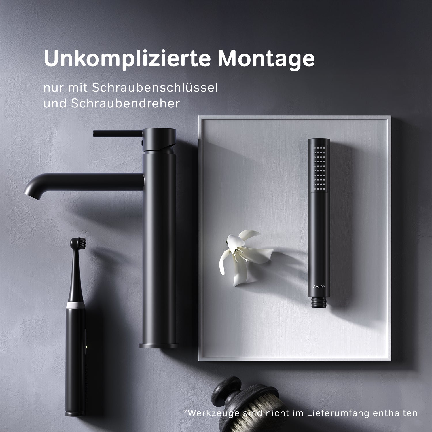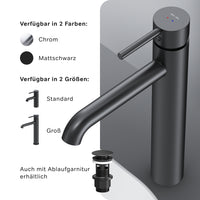 FPA92022 Bad Armatur Spike Waschtischarmatur mit hohem Auslauf Wasserhahn Schwarz