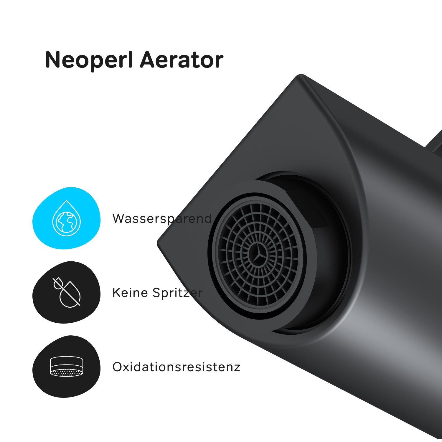 F8Y82122 Bad Armatur Play Waschtischarmatur mit Ablaufgarnitur Wasserhahn, Schwarz