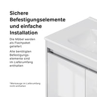 MPAX0801WG-C0802WG Waschtischunterschrank mit Waschbecken, als Flachpaket geliefert, 80 cm, 2 Türen, Weiß glänzend