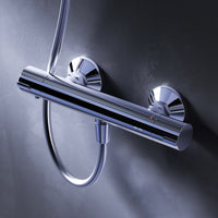 Der ergonomische Griff ermöglicht die Bedienung des Duschsystems selbst mit seifigen Händen. Die Thermostatkartusche mit hochsensibelem Thermoelement reagiert sofort auf Temperatur- und Druckschwankungen und schützt zuverlässig vor Verbrühungen – auch bei plötzlichem Ausfall von Kaltwasser.