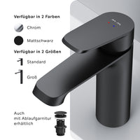 • ARMATUR: Die Mischbatterie verfügt über einen Einhebelmischer für warmes als auch kaltes Wasser. Der Wasserhahn ist mit einer 1-Loch Montage im Nu am Waschtisch montiert.