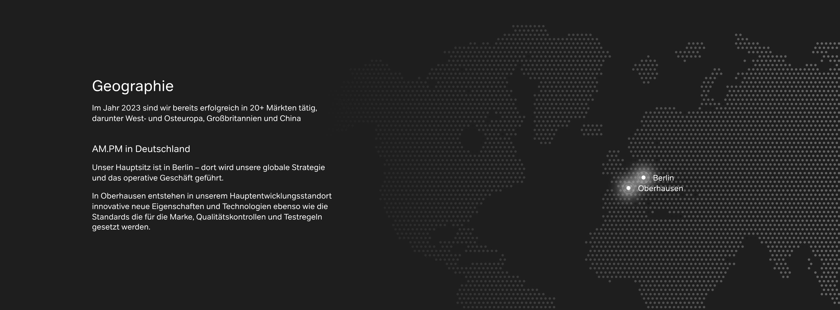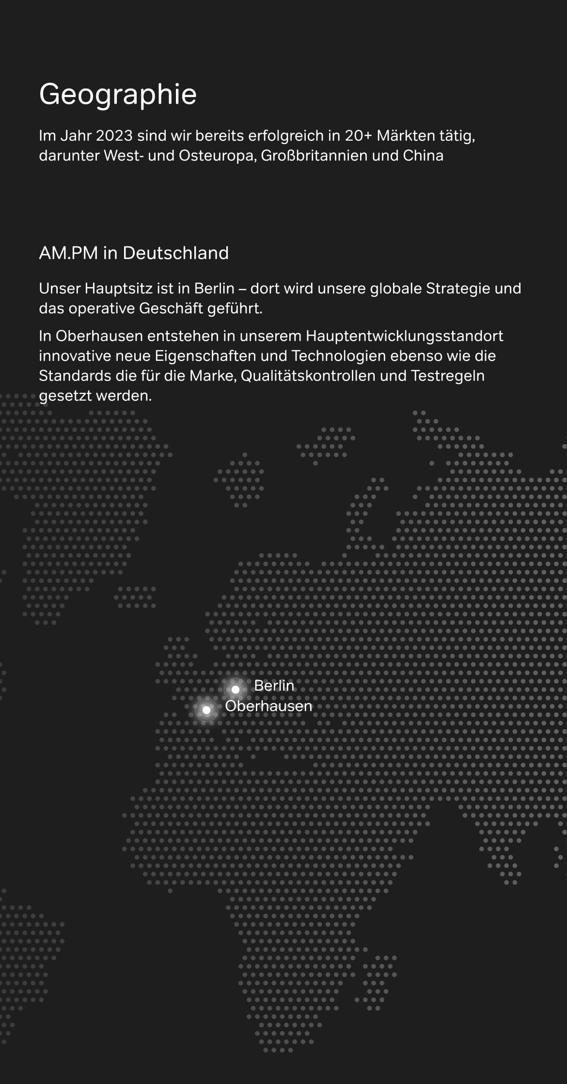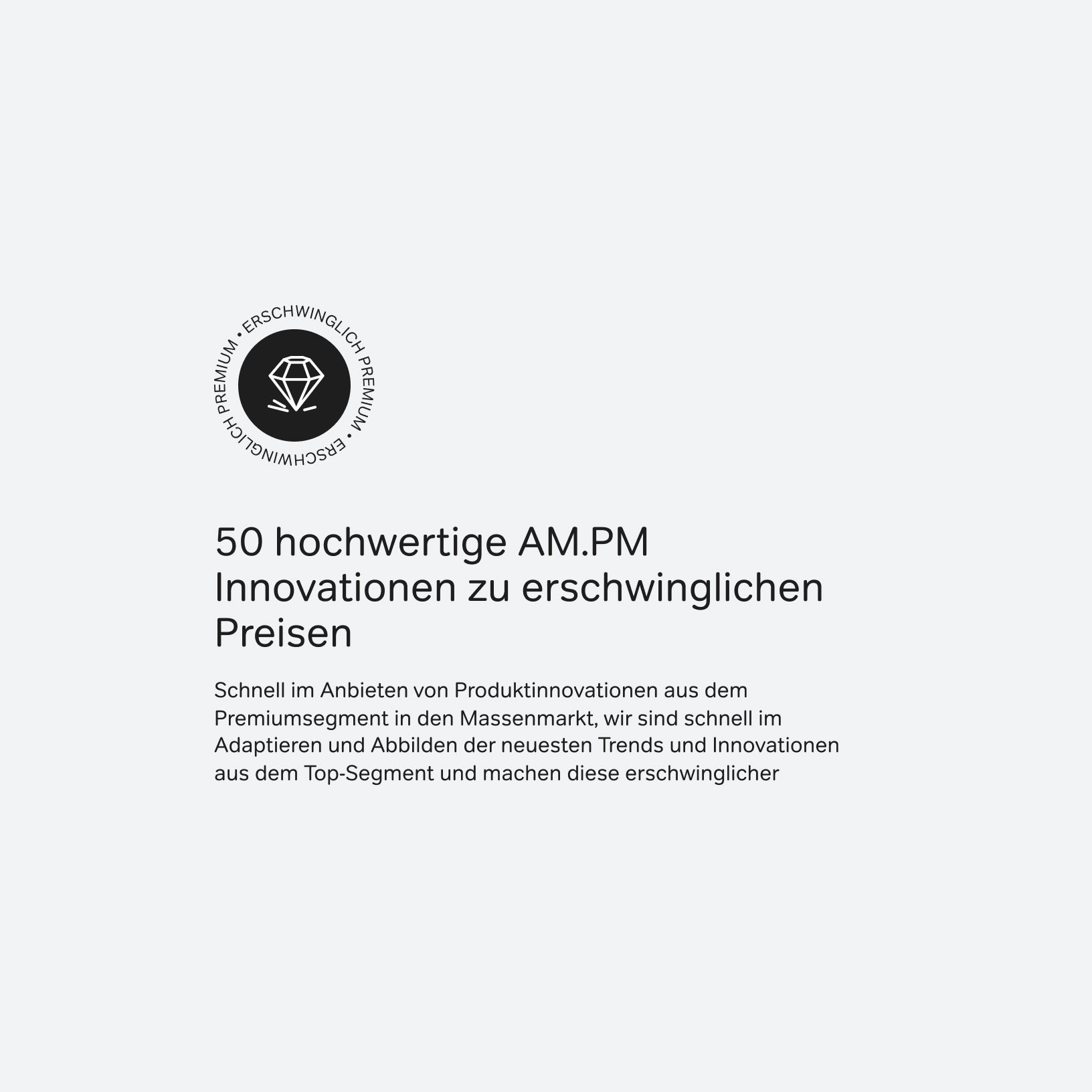 Perfektion, Stil, Einzigartigkeit — das sind die charakteristischen Stärke der Produkte von AM.PM. AM.PM wurde 2010 in Deutschland gegründet und vereint das Beste aus deutscher Technologie mit emotionalem Design, um wirklich inspirierende Produkte zu schaffen, die sich jeder leisten kann.