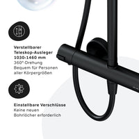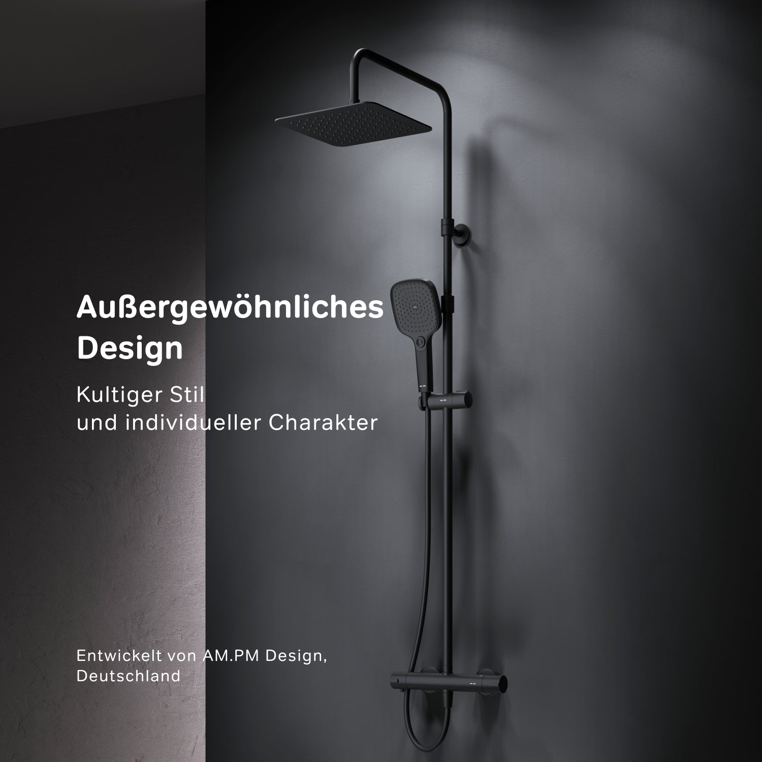 F078X422 Duschsystem mit Thermostat Duscharmatur Play Regendusche set Duschsäule, Schwarz