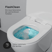 FlashClean – eine neue Generation randloser WCs, vollständig ohne Kunststoff: 100% Hygiene, 0% Spritzer.