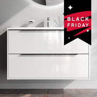 MNA-FHX1002WGSP-WCC1002WG Meuble sous-vasque avec vasque, livré en kit, 100 cm, 2 tiroirs, blanc brillant